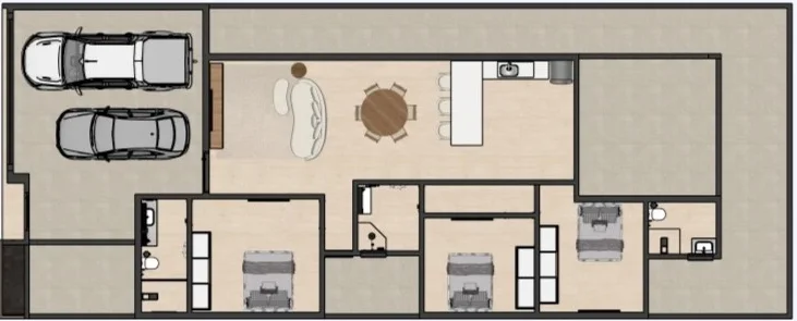 Planta de casa com 4 Suítes, piscina, área gourmet e terraço